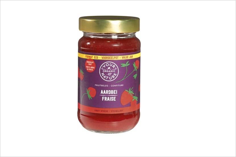 - Product: Aardbeien-fruitbeleg voordeelpot van Your Organic Nature